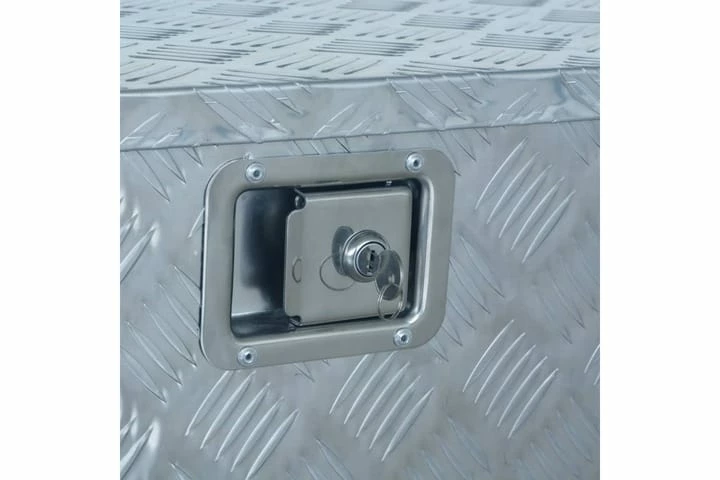 Vår universalboks i aluminium er et ideelt valg for pakking, lagring og transport, og du kan lagre boksen i et kjøretøy, en garasje, eller ta den med på din neste campingtur, takket være det lette og kompakte designet. Boksen er laget av høykvalitets bølgeblikk, og er dermed rustbestandig og holdbar. Tilhengerkassen har et romslig interiør for å lagre verktøy, tilbehør eller gir, og er også utstyrt med låsesystem for ekstra sikkerhet (1 nøkkel inkludert). Farge: sølv Materiale: aluminium Mål: 737/381 x 410 x 460 mm (B x D x H) Triangel Vekt: 6,35 kg Med låsesystem (1 nøkkel inkludert) Rustbestandig og lett å rengjøre