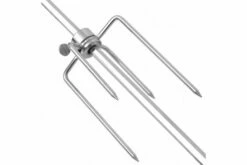 Dette rotisserie-spydet vil gi en utmerket grillsmak til grillmaten din, fra gyldenbrun stekt kylling til sprø grønnsaker. Rotisserie-settet er designet for bruk med gass- eller kullgrill, eller over åpen ild. Det motoriserte spydet vil snu automatisk, noe som sikrer jevn oppvarming av hva enn du måtte ønske å grille. Avstanden mellom gaflene kan justeres for å tilpasse mat med ulik form og størrelse, for så å festes med låseskruer. En balansevekt følger med for å gi ekstra vekt på den ene siden når det kreves. Spydet er laget av høykvalitetsmaterialer, og er enkel å rengjøre og vedlikeholde. Spydet passer ikke bare for kjøttelskere, det kan også brukes for å tilberede poteter, mais, osv. Lag en utendørsfest for familien og vennene dine! Spyd- og gaffelmateriale: Forkrommet stål Motorhus materiale: Plastikk Total lengde: 1170 mm Spydlengde (uten håndtaket): 1000 mm 2 spydgafler med låseskruer Motorkraft: 220-240 V, 50/60 Hz, 4 W Motordimensjoner: 87,5 x 65 x 118 mm (L x B x H) Kabellengde: 1,2 m Med en balansevekt Med bakelitthåndtak