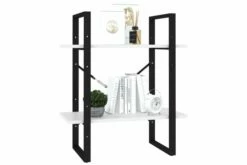 Denne bokhyllen er laget av sponplate som sikrer stabilitet, holdbarhet og langvarig bruk. Den har 2 hyller som gir god lagringsplass for bøker, magasiner og andre dekorative gjenstander. Den er enkel å rengjøre med en fuktig klut.
