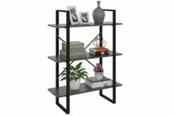 Denne bokhyllen er laget av kvalitetsbrett og metallramme, noe som sikrer stabilitet, holdbarhet og langvarig bruk. Den har 3 hyller som gir god lagringsplass for å holde bøker, blader og andre dekorative gjenstander. Bokhyllen er enkel å rengjøre med en fuktig klut.