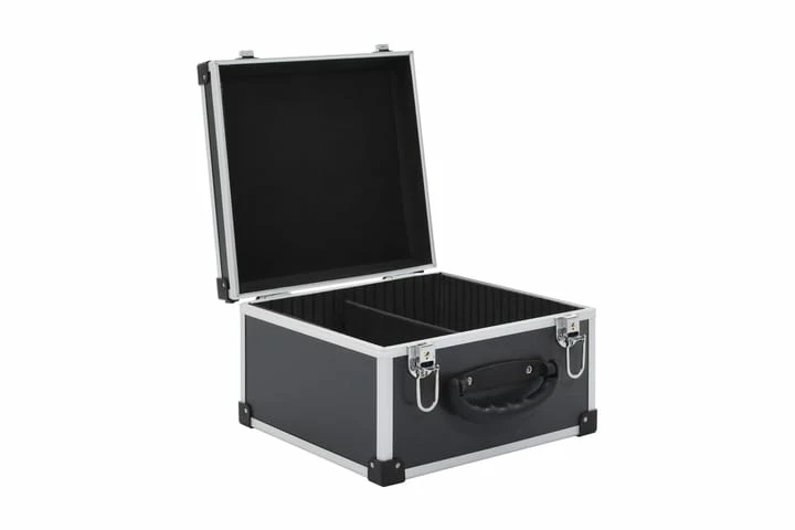 Vår slitesterke CD-koffert med aluminiumstrimming hjelper deg med å holde dine favoritt-CD-er organisert, beskyttet og fri for støv. Kofferten er laget av tre med et lag av ABS og full aluminiumstrimming, og den er veldig solid og slitesterk. De forsterkede kantene har forbedret holdbarhet. Takket være de avtagbare oppbevaringspanelene kan du organisere albumene dine i henhold til ønsket størrelse. I tillegg kan CD-kofferten låses for ekstra sikkerhet. Leveransen inkluderer 1 CD-koffert og 2 nøkler. Farge: svart Materiale: tre, ABS med aluminium Mål: 29,5 x 29,5 x 18,5 cm (L x B x H) Full aluminiumstrimming Forsterkede hjørner Låsbar Leveransen inkluderer 1 CD-koffert og 2 nøkler