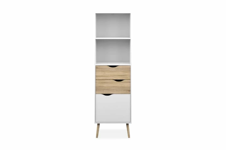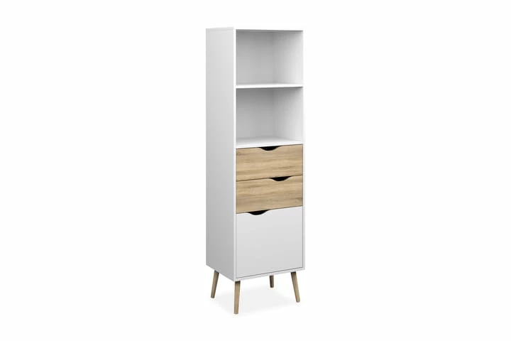 Delta bokhylle er et veldig smakfullt møbel med det lille ekstra. Preget av rette linjer og glatte flater er designet både sofistikert og moderne. Med to skuffer og skap. Skjult oppbevaringshylle. Med høye ben får bokhyllen også en retro følelse. Delta bokhylle har et design som gjør den egnet til mange forskjellige stilarter.