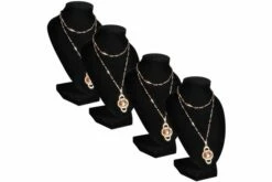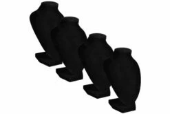 Denne elegante flanell smykkerholderen har en klassisk og tidløs stil. Den er skapet for å vise og bevare halskjeder, anheng og kjeder. Den holdbare MDF basen sikrer at smykkeholderen skal bevare stabiliteten når du viser smykker. Med denne stilige halskjede bust,er gullsmeder i stand til å utstille sine halskjeder, anheng og kjeder i butikkvinduer eller på håndverksmesser. Det er også perfekt for personlig bruk. Leveransen inkluderer 4 smykkerholdere.