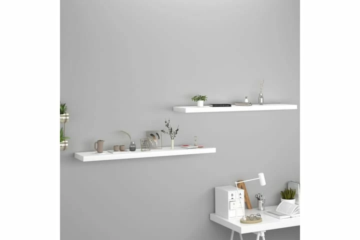 Flytende Vegghyller 2 Stk Hvit 120×23,5×3,8 Cm MDF