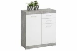 Dette skapet fra FMD er laget av slitesterke, melaminbelagte sponplater i sofistikert hvit- og betongfarge som gjør at det passer perfekt til enhver interiørstil.