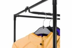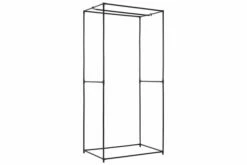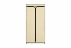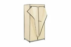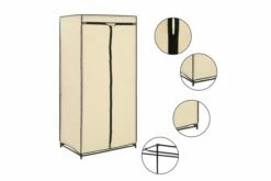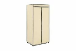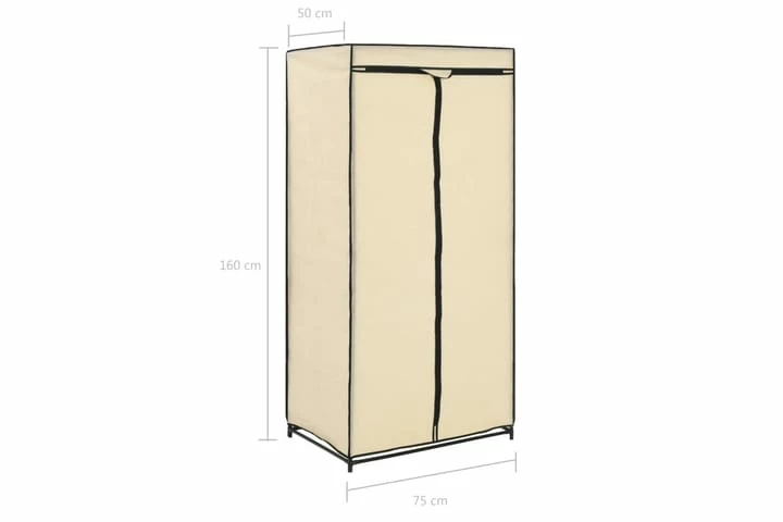 Garderobeskapet med solid jernramme og stoffdeksel med glidelåser, kan beskytte klærne mot smuss og støv. Det praktiske plugg-inn-systemet gjør det mulig å montere denne garderoben uten å bore eller skrue. Baserammen består av robuste jernrør, som sammenkobles med kontakter. Stoffdekselet er laget av pustende polyester. Garderobeskapet består av en hoveddel med klesskinne. Leveringen inkluderer 2 klesstativer. Farge: kremhvit Mål: 75 x 50 x 160 cm (B x D x H) Materialer: jernrør + 100% polyester Med glidelås Leveringen inkluderer 2 klesstativer ADVARSEL: For å forhindre at produktet velter, må medfølgende festemidler for vegg benyttes