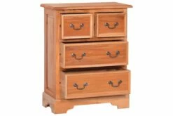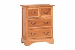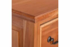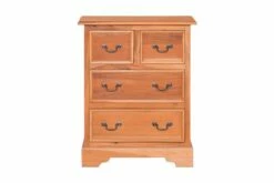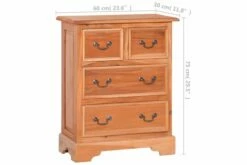 Skuffeskapet er håndlaget av heltre mahogni, noe som gjør det stabilt og holdbart. Mahogni med rette og jevnte korn er relativt fri for tomrom og motstår treråte. Den rødbrune fargen blir mørkere over tid og viser en rødlig glans når den blir polert. Den robuste toppen er perfekt for å vise fotorammer, vaser, fruktkurver og andre dekorative gjenstander. Skuffeskapet har 2 store skuffer og 2 små skuffer for ekstra lagringsplass.