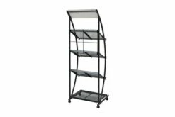 De fire store hyllene gir god plass til å vise frem brosjyrer, bøker eller blader i A4-størrelse ved siden av hverandre. Du kan skrive ut eller klistre firmaets logo på topplaten. Det er enkelt å flytte takket være svinghjulene. Med sitt moderne design passer det til nesten hvilken som helst interiørstil. Du kan plassere det på kontoret, venterommet, stuen eller soverommet.