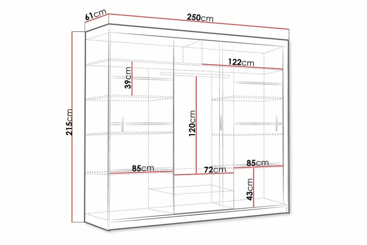 | Størrelse | 61x250x215 cm |