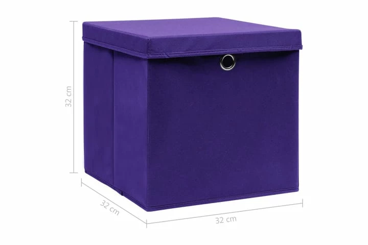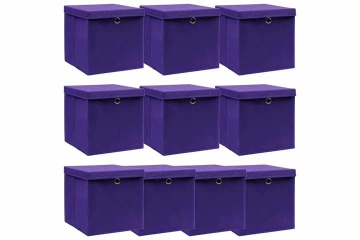 Oppbevaringsbokser Med Lokk 10 Stk Lilla 32x32x32 Cm Stoff