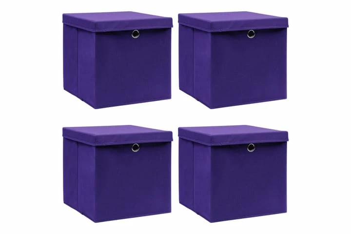 Oppbevaringsbokser Med Lokk 4 Stk Lilla 32x32x32 Cm Stoff