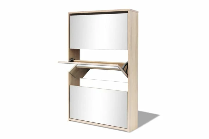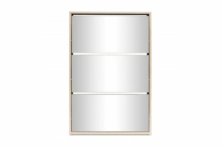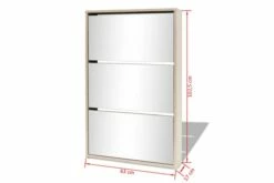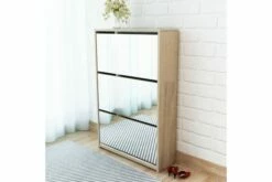 Dette skoskapet med speil har tre uttrekkbare skuffer, som hver kan romme 3 til 4 par sko. Skostativet er montert direkte på veggen. Dette sterke og holdbare gangskapet er laget av materialer av høy kvalitet, noe som gjør dette til et svært praktisk sted for oppbevaring av sko med stil og ryddighet.