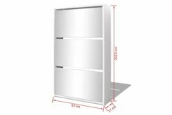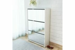 Dette skoskapet med speil har tre uttrekkbare skuffer, som hver kan romme 3 til 4 par sko. Skostativet er montert direkte på veggen. Dette sterke og holdbare gangskapet er laget av materialer av høy kvalitet, noe som gjør dette til et svært praktisk sted for oppbevaring av sko med stil og ryddighet.