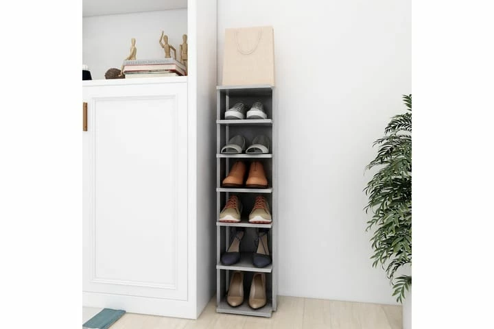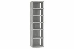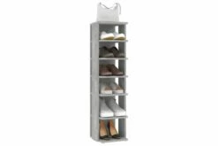 Det er laget av kvalitetsbrett som gir det et raffinert utseende og gjør det stabilt og holdbart. Dette skoskapet tar liten plass og er perfekt for trange hjørner, som for eksempel under trapper. Med 6 hyller kan det oppbevare mange sko.