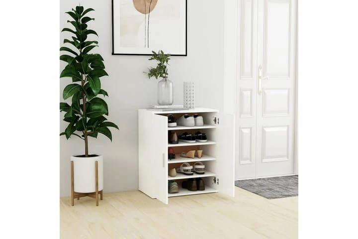 Dette gangskapet er laget av sponplater, og er ekstremt slitesterkt og solid. Skoskapet har 5 hyller, som gir god plass til å holde skoene godt organisert. Takket være de 2 dørene beskytter skoskapet skoene dine mot støv samtidig som de holder dem ute av syne. I tillegg kan du feste det på bakken eller veggen etter behov.