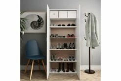 Skap et varmt og innbydende miljø rett ved siden av døren med vårt elegante og praktiske skoskap! Dette tidløse skoskapet presenterer en ideell skopbevaringsløsning for soverommet eller gangen. Du vil ikke lenger bli irritert av sko liggende overalt på gulvet. Dette gangskapet er laget av sterk sponplate, og er ekstremt holdbart og solid. Skoskapet har 6 hyller som gir god plass for å holde skoene godt organisert. Takket være de to dørene beskytter skooppbevareren skoene dine mot støv og holder dem ute av syne.