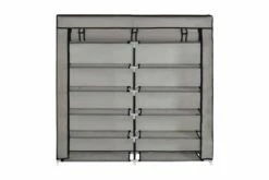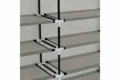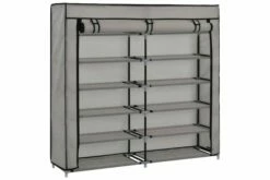Skoskapet vårt er en flott lagringsløsning for din samling av favorittfottøy. Dette skoskapet har et 5-lagsdesign, og er designet for å lagre en hel skosamling for deg. Du trenger ikke å irritere deg lenger over oppbevaring av sko. Takket være 5-lags designet, kan dette skoskapet enkelt huse 10 par sko, og holde alle dine elskede sko ryddige og godt organisert på ett sted. Det ikke-vevde dekselet med glidelås holder skoene dine ute av syne, og forhindrer at de blir støvete. I tillegg er skoskapet lett i vekt, noe som gjør det enkelt å flytte. Farge: grå Materialer: jern og ikke-vevd stoff Samlet mål: 115 x 28 x 110 cm (B x D x H) ADVARSEL: For å forhindre at produktet velter, må medfølgende festemidler for vegg benyttes Stoff: Polyetylen: 100%