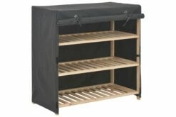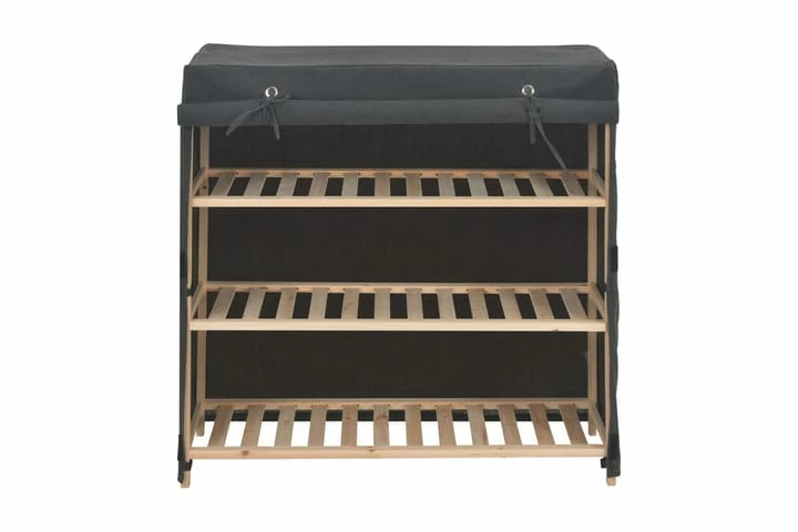 Vårt skoskap er en flott lagringsløsning for å ivareta skoene på en ordentlig måte. Du trenger ikke å bli irritert av skoene i huset lenger. Takket være designet på tre etasjer, kan dette skoskapet enkelt holde 6 par sko, og holde alle dine kjære sko tilgjengelige, ryddige og velorganiserte på ett sted. Tekstiltrekket kan holde skoene dine synlige, og hindrer at skoene dine samler støv samtidig. I tillegg er skoskapet lett i vekt, noe som gjør det enkelt å flytte. Skoskapet er enkelt å montere. Farge: grå Materialer: stoff og ramme av heltre gran Mål: 79 x 40 x 80 cm (L x B x H) Med tre etasjer Stoff: Bomull: 60%, Polyester: 40%