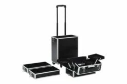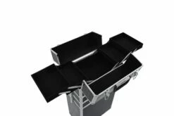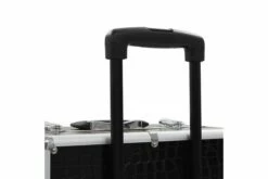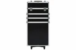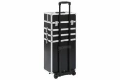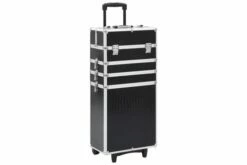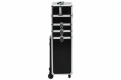 Vår sminketralle er den ideelle løsningen for å holde sminken din pent organisert. Bare pakk alt du trenger i denne praktiske sminkekofferten og ta den med deg! Sminkevognen er laget av tre, ABS-lakk og aluminium, og vil lett lagre sminken din og holde den i perfekt stand. Denne sminkekofferten har 4 etasjer og uttrekkbare skuffer i toppdekselet, og gir god lagringsplass for kosmetikk og skjønnhetsprodukter. Den har 4 avtagbare hjul, som gjør den enkel å flytte og ta med deg overalt hvor du drar! Farge: svart med krokodillemønster Materialer: aluminium, ABS og tre Mål: 37 x 22 x 78 cm (L x B x H) Med 4 etasjer og uttrekkbare skuffer i toppdekselet Med 4 avtagbare hjul