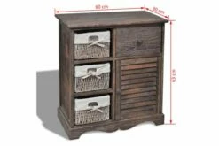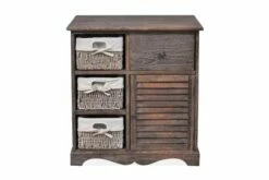 Dette slitesterke treskapet tilbyr rikelig med plass for lagring av verdisaker og kommer komplett med tre vevde kurver,. Det vil sette et landlig preg på rommet. Treskapet vårt vil garantert bli et av dine favorittmøbler, uansett rom.