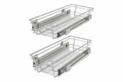 Takket være fullstendig uttrekkbare løpere med kulelager, kan disse kurvskuffene åpnes og lukkes skånsomt. De er egnet for 30 cm brede kabinetter eller skap, og har en maksimal lastekapasitet på 25 kg for hver.